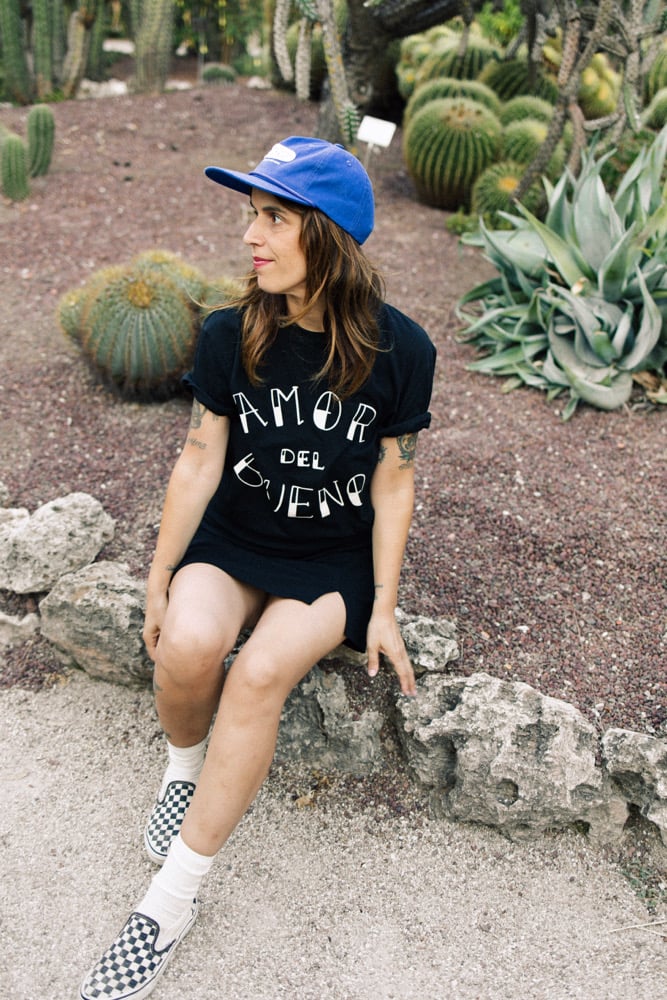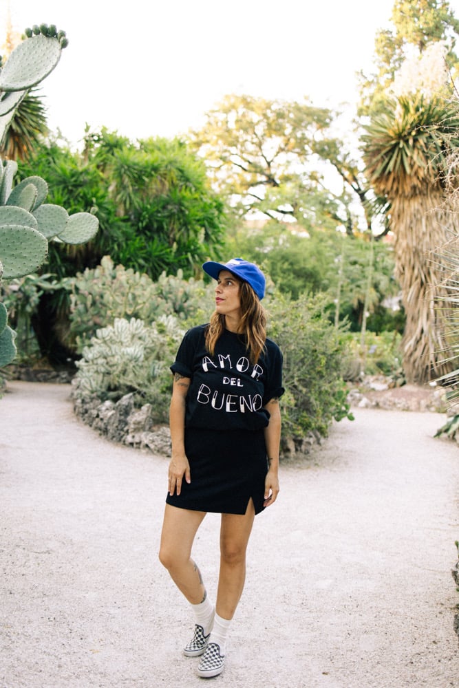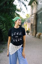 Camiseta de algodón orgánico, color negro y tinta blanco roto.