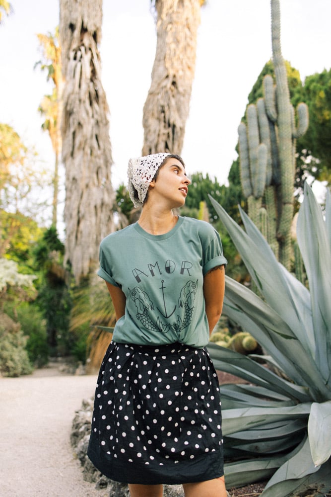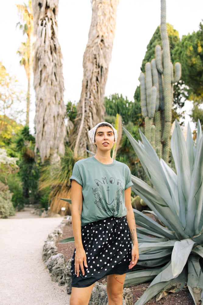 Camiseta UNISEX de algodón orgánico, color verde y serigrafía en negro. Disponible de la talla S a las 3XL.